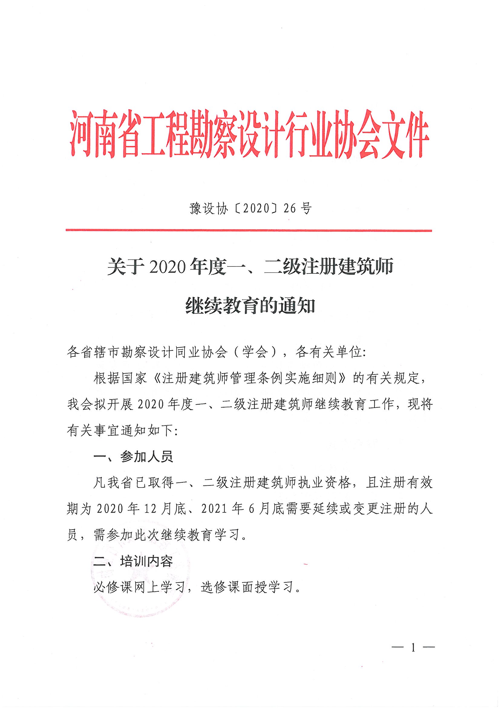 省协会星空(中国)2020年度一、二级注册建筑师继续教育的通知